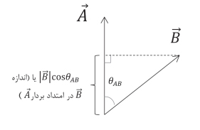 درواقع حاصلضرب داخلي دو بردار را ميتوان بهصورت بزرگي يکي از بردارها (A) در مؤلفه يا تصوير بردار دوم در امتداد بردار اول () بيان کرد.
